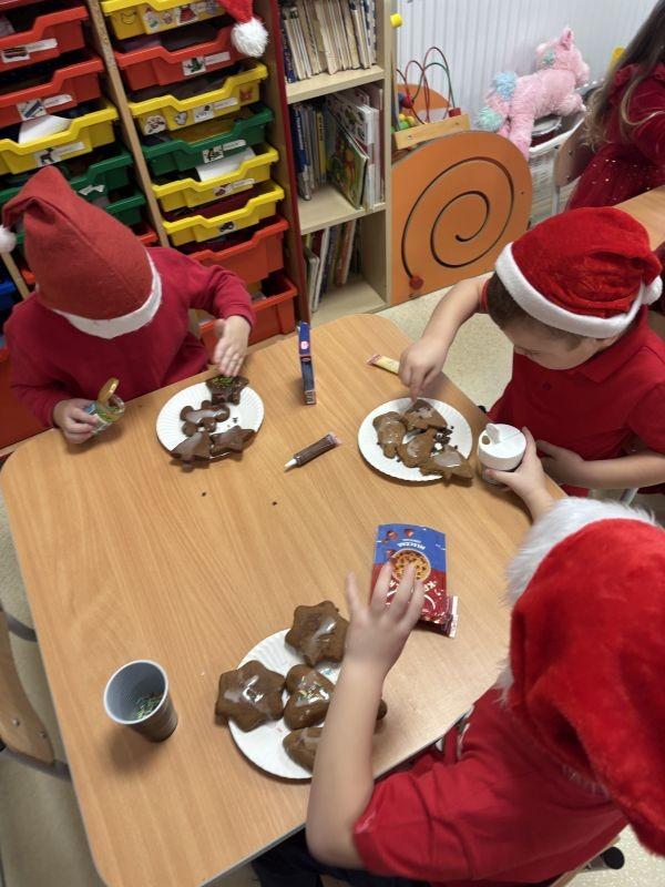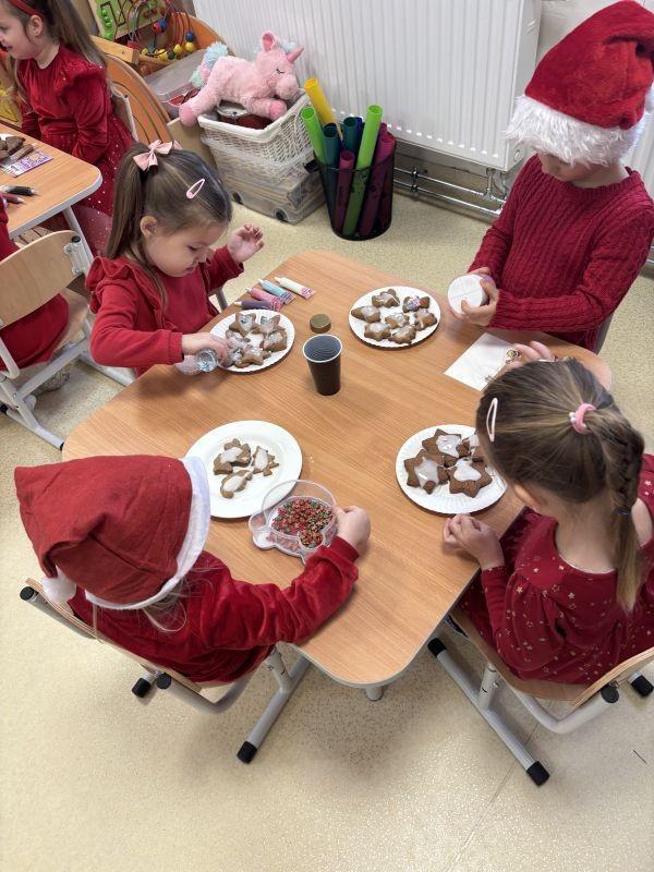 Mikołajki to jeden z najbardziej wyczekiwanych przez przedszkolaki dni w roku. W grudniu w przedszkolnych salach zaczyna panować świąteczna atmosfera. Dzieci z Naszego Przedszkola 5 grudnia ubrały choinkę, przygotowały kolorowe ozdoby, a także recytowały wierszyki i śpiewały piosenki o Mikołaju wyczekując na jego wizytę. Dzieci wykonały też świąteczne prace plastyczne. Maluchy ozdobiły w tym dniu również pierniczki, które następnie degustowały. Mikołaj w tym roku bardzo zapracowany zostawił dla dzieci prezenty pod choinką i napisał list , w którym były życzenia świąteczne. Był to dzień pełen atrakcji, serdeczności i radości. (N. Matyjasik)