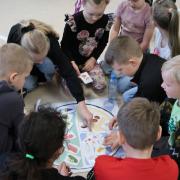 Podczas zajęć uczniowie zapoznali się z zasadami prawidłowego odżywiania. Dzieci dowiedziały się w jaki sposób odczytywać schemat talerza zdrowego żywienia oraz jak odróżniać produkty korzystne dla organizmu od tych niekorzystnych. Uczniowie aktywnie uczestniczyli w zajęciach, udzielając odpowiedzi na pytania oraz rozwiązując zagadki. Wszystkie dzieci otrzymały broszurę edukacyjną „Talerz zdrowego żywienia” oraz magnes z logo projektu, natomiast cała grupa została nagrodzona dyplomem za udział w zajęciach dotyczących prawidłowego odżywiania. (A. Jarantowska)