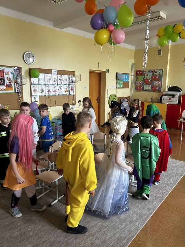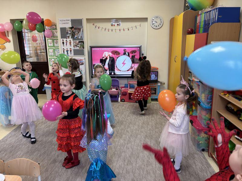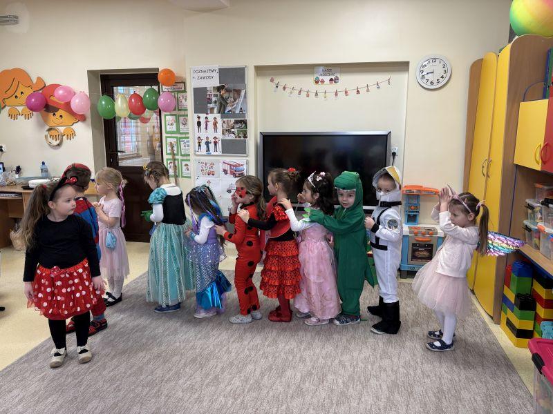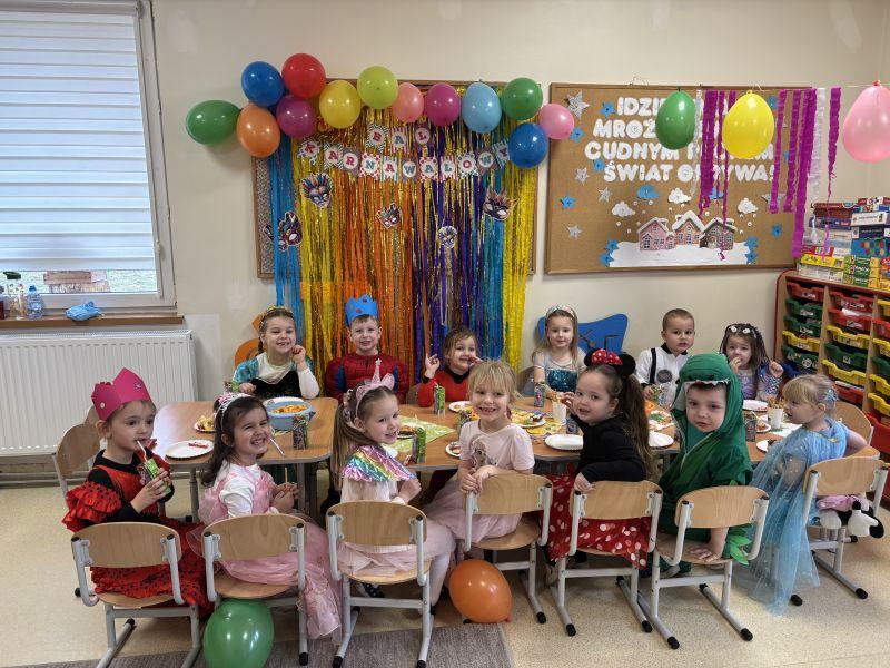 06.02.2026r. w Naszym Przedszkolu odbył się radosny i kolorowy Bal Przebierańców, na który dzieci czekały z wielką niecierpliwością. Tego dnia sale przedszkolne zamieniły się w prawdziwy zaczarowany świat pełen muzyki śmiechu i fantastycznych postaci. Dzieci przybyły ubrane w przepiękne stroje – wśród uczestników balu można było spotkać księżniczki, super bohaterów, zwierzątka, wróżki, policjantów, oraz wiele innych bajkowych postaci. Każdy strój był wyjątkowy i wzbudzał zachwyt. Podczas balu nie zabrakło wspólnych tańców, zabaw przy muzyce, przekąsek oraz konkursów, które sprawiły dzieciom ogromną radość. Wszyscy bawili się doskonale, a uśmiechy nie schodziły z twarzy uczestników. Bal Karnawałowy był wspaniałą okazją do integracji, rozwijania wyobraźni oraz wspólnego, radosnego spędzenia czasu. To wydarzenie na długo pozostanie w pamięci naszych przedszkolaków. (N. Matyjasik)