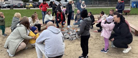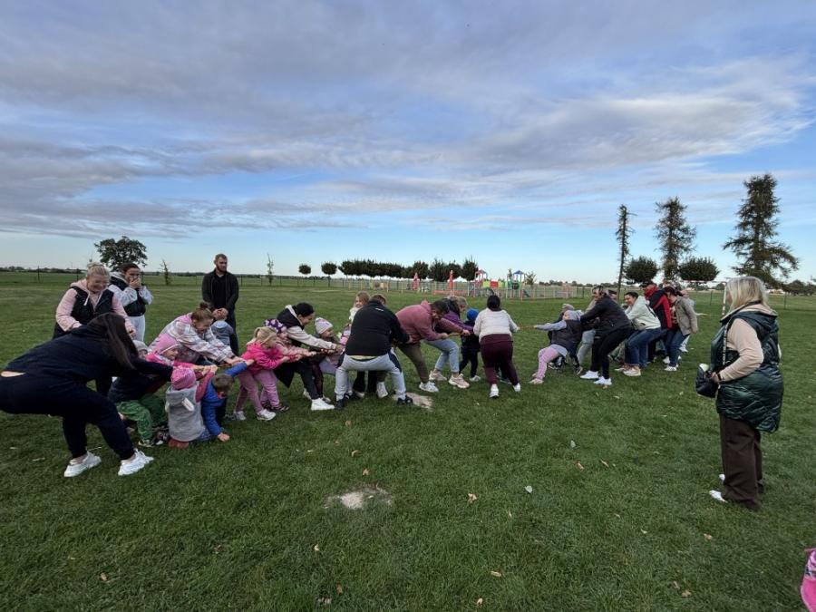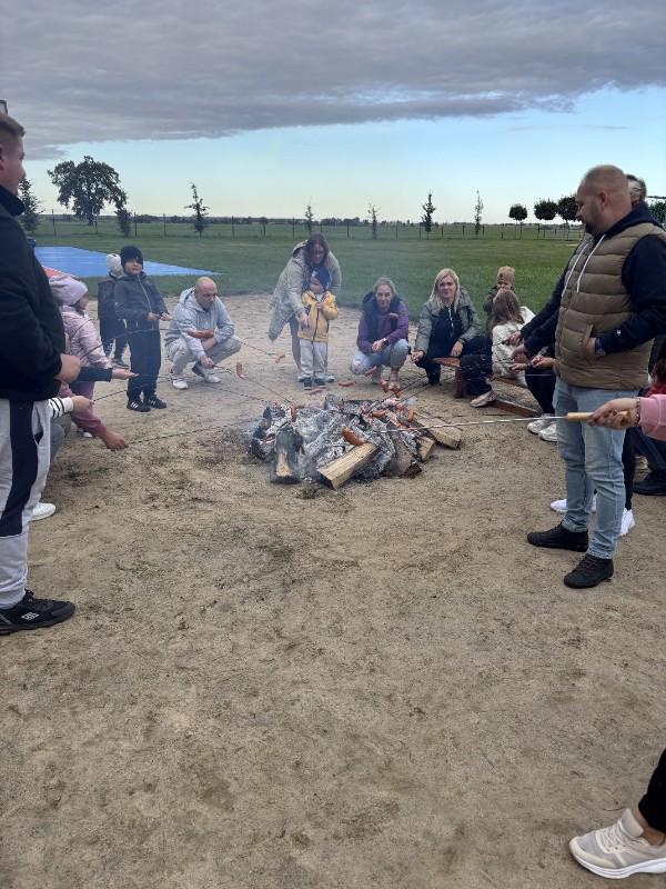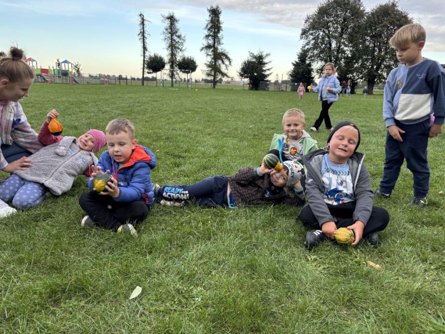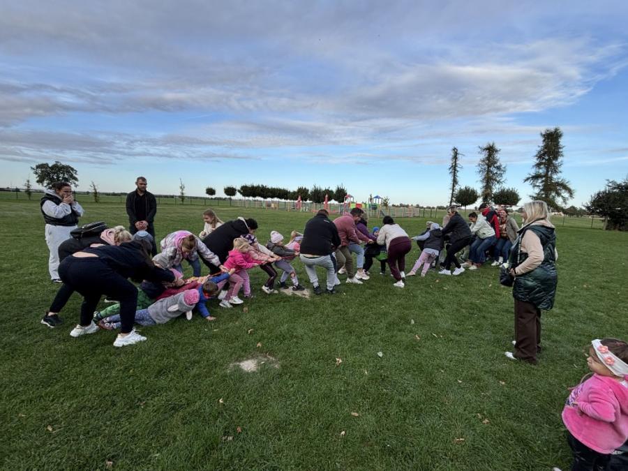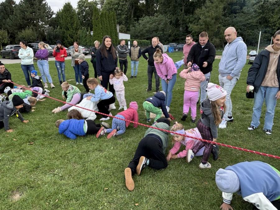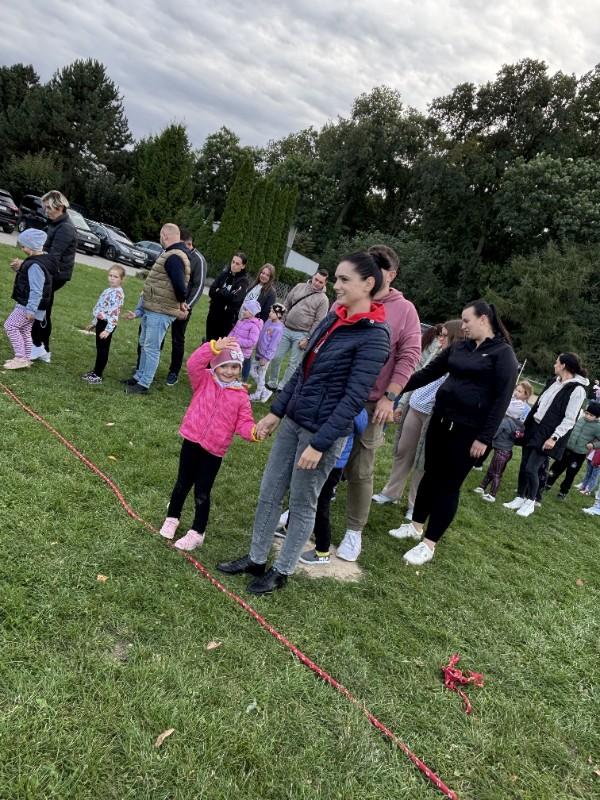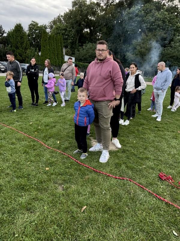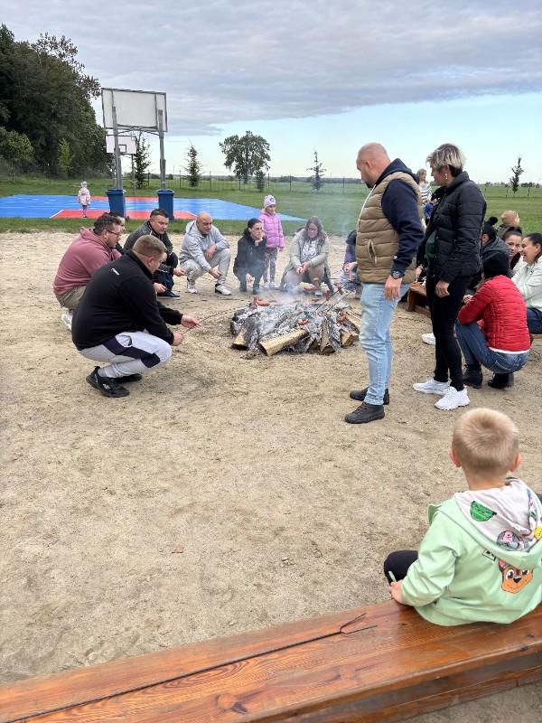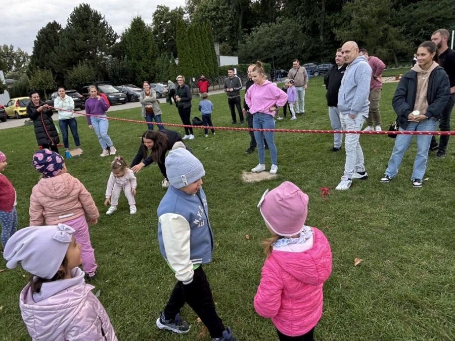 Jak wiadomo – jesień to piękna pora roku mieniąca się wszystkimi kolorami. To także pora roku bogata w dary takie jak: kasztany, żołędzie, owoce, warzywa, grzyby itp. Jesień to również doskonała pora na ognisko. Przedszkolaki korzystając z pięknej jesiennej słonecznej pogody bawiły się w piątek wspólnie z rodzicami na ognisku zorganizowanym przez nauczycielki w Kotowiecku. Nie mogło zabraknąć pieczonej kiełbaski, którą dzieci piekły pod okiem rodziców i jadły z apetytem. Ognisko było także okazją do spróbowania smaku pieczonego ziemniaka. To tylko niektóre atrakcje ze wspólnej zabawy. Tak naprawdę chodziło o integrację dzieci i rodziców oraz czas spędzony w miłej atmosferze. Panie zorganizowały również zabawy dla wszystkich, były konkursy, szukanie dyni, a także przeciąganie liny – rodzic kontra przedszkolaki oraz przechodzenie pod liną. Na zakończenie dzieci otrzymały słodkie upominki i medale. Wszystkim bardzo miło i szybko upłynął czas zabawy – na pamiątkę pozostały zdjęcia i wspomnienia. (N. Matyjasik)
