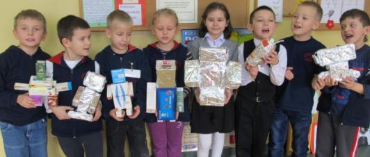 Pierwszaki chętnie opowiadają o swojej szkole i klasie :,,Lubimy swoją szkołę, lubimy razem się uczyć i bawić”. Angażują się w różne, szkolne przedsięwzięcia- zbierają plastikowe nakrętki, ponieważ chcą pomóc choremu koledze, segregują śmieci, ponieważ dbają o środowisko.