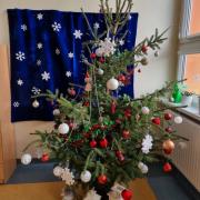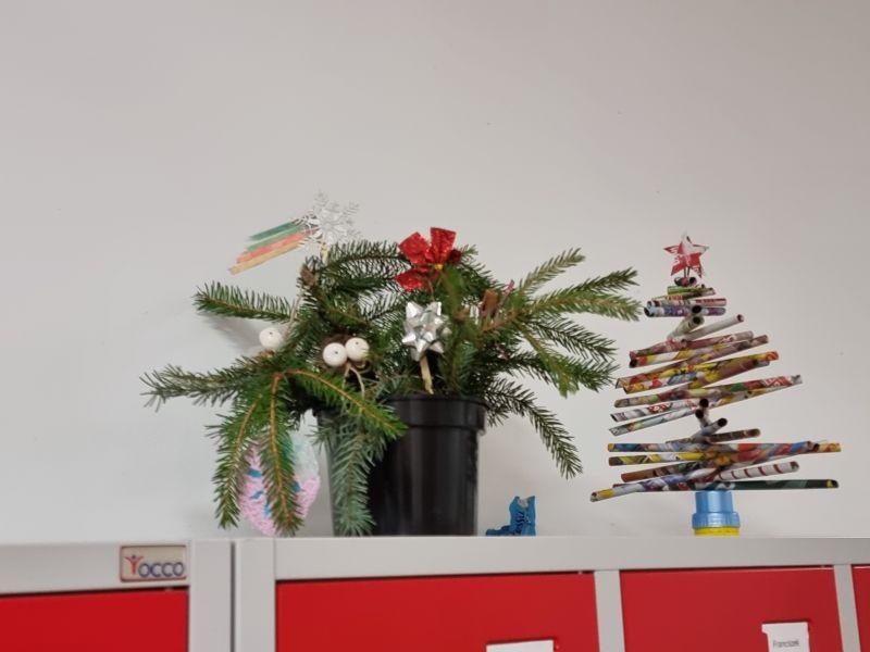 Naszej szkole z pewnością nie można odmówić świątecznego nastroju, a to za sprawą pięknych, świątecznych dekoracji. Na korytarzu szkolnym możemy podziwiać świąteczne drzewko przyozdobione pamiątkowymi bombkami z wycieczki do Koźmina Wielkopolskiego. Każdą salę lekcyjną zdobią żywe choinki wspólnie przybrane według uznania danej klasy. U sufitu wiszą stroiki i papierowe ozdoby, a na uczniowskich szafkach pojawiły się świąteczne dekoracje. Na końcu korytarza szkolnego można podziwiać zimowe i świąteczne prace uczniów. Ozdoby zostały przygotowane podczas lekcji techniki, zajęć świetlicowych i koła plastycznego. W naszej szkole zorganizowano muzyczne przerwy, podczas których można posłuchać świątecznych piosenek. Serdeczne podziękowania kierujemy do państwa Aldony i Grzegorza Skowrońskich, którzy ofiarowali naszej placówce świąteczne drzewka. (U. Adrian)